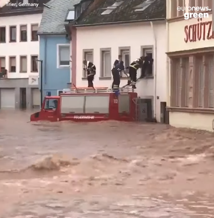미국과 캐나다 유럽과 중동 등 세계 전역의 폭염이 기후 변화로 인한 것이라는 최근 연구가 점점 더 확실해지는 상황에서 유럽은 지금 곳곳을 휩쓰는 폭우로 심각한 피해를 겪고 있다. 독일 서부의 노르트라인베스트팔렌주 및 라인란트팔츠주 그리고 벨기에와 룩셈부르크에 접해있는 아이펠(Eifel) 지역의 "한세대에 한 번 있을까 말까 하는" 홍수로 42명이 사망하는 최악의 참사가 발생했다. 인터넷과 전화를 포함한 통신이 두절되고, 긴급 전화 112도 단절됐다. 벨기에에서도 폭우로 최소 6명이 사망했으며, 네덜란드, 프랑스, 스위스도 홍수로 심각한 피해를 입었다. 런던의 일부 지역은 한 달 동안 강우량과 맞먹을 정도의 비가 하루에 내려 도시 곳곳이 홍수로 범람하고 있다.