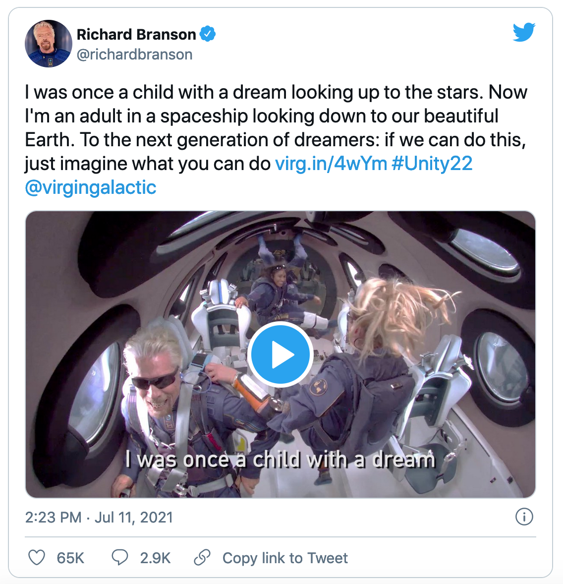 그렇다면 그것은 누구를 위한 여행인가? 브랜슨은 7월 11일 아궤도 우주로 여행을 떠난 후 승리 연설을 통해 "모든 사람"이 우주여행을 할 수 있도록 할 것이라고 선언했다. 우주 관광이 언젠가는 대중 산업이 될 것이라는 주장이다.