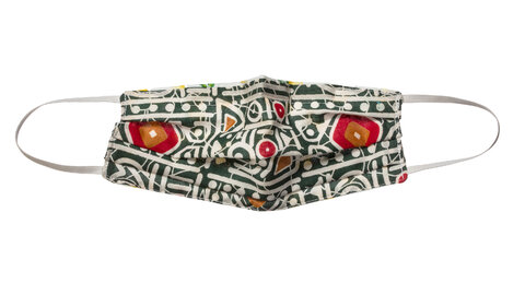직사각형 수술 마스크는 얼굴에 맞게 조정할 수 있는 주름형 합성 천으로 만들어진다. 실험실에 60~80% 의 입자를 잡을 수 있지만 실제 환경에서는 가장자리 주변의 틈새로 인해 효율성이 떨어진다. 귀에 대는 줄을 매듭지으면 착용감을 개선할 수 있다. |