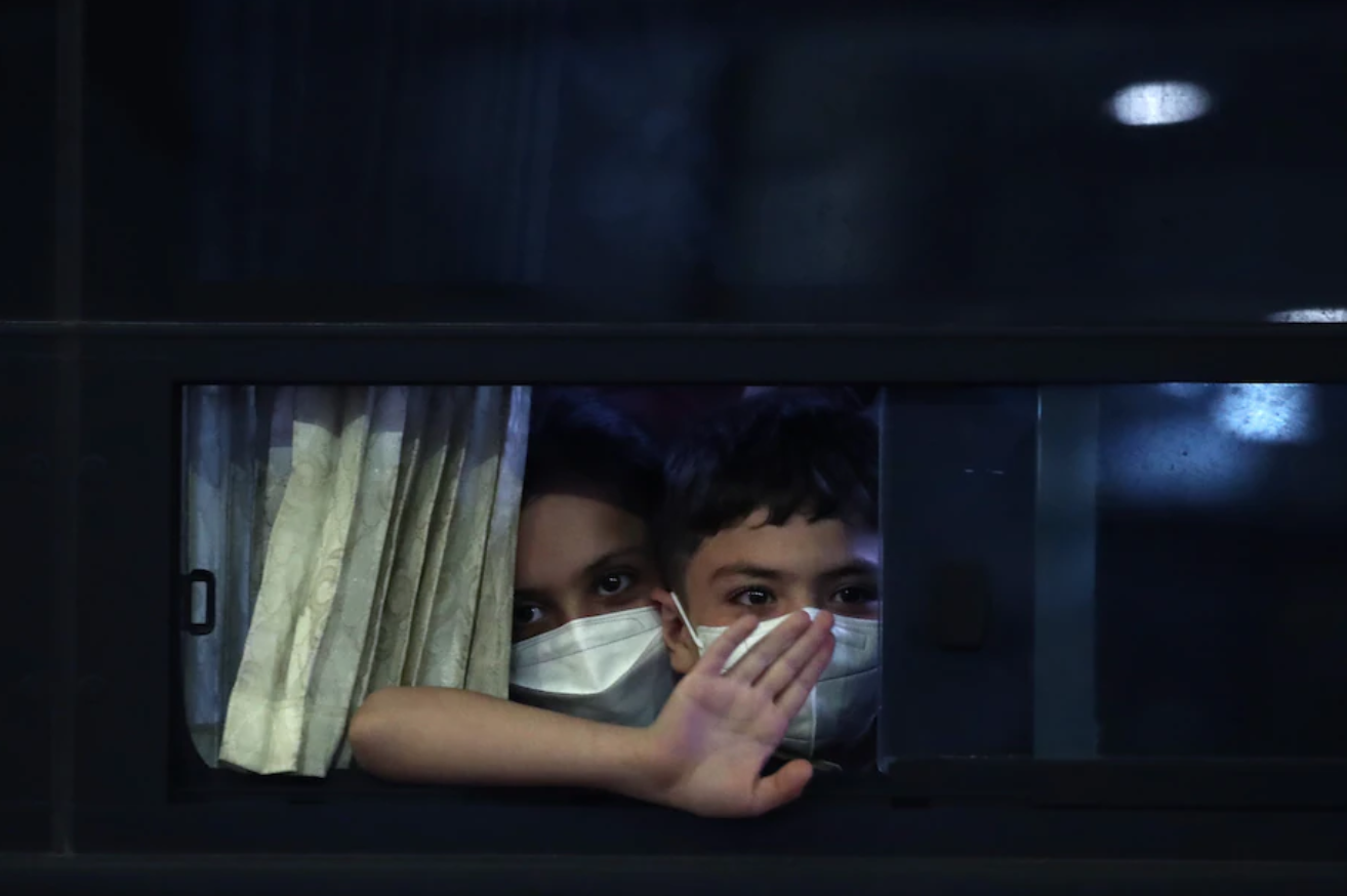 금요일 현지 언론은 마스크를 쓴 한국 관리들이 공항 밖에 서서 새 입국자를 태운 버스에 손을 흔드는 영상을 공유했다.