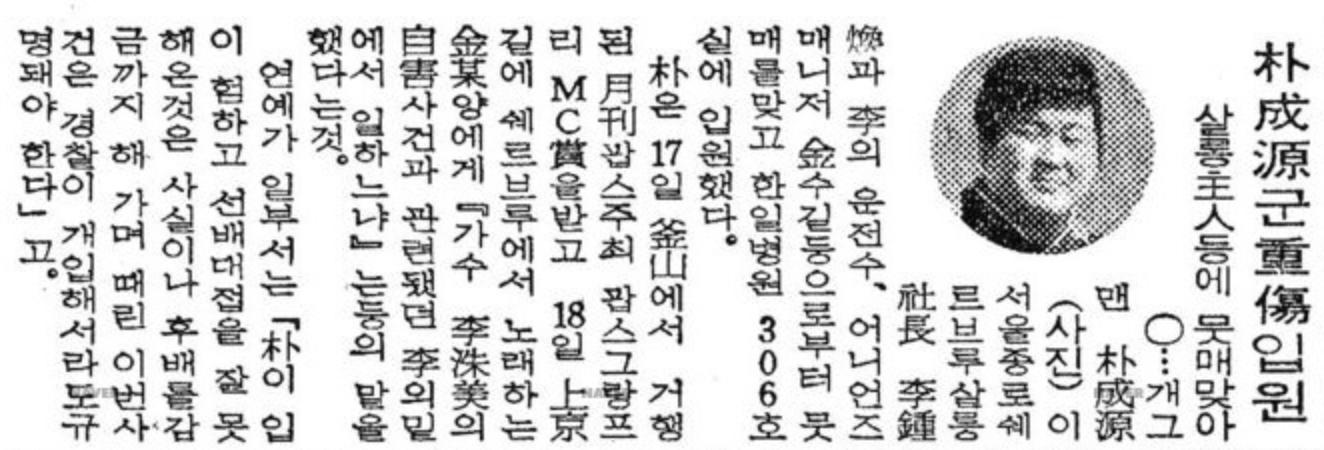 '밤의 디스크쇼', '여성 시대' 등으로 알려진 이종환 씨는 밤의 대통령으로 불릴 정도로 연예계에서 상당한 영향력을 행사했다. 위의 기사를 보면 그는 두 사건에 연루되었다. 하나는 그가 개그맨 박성원의 자살의 원인 제공자이며, 다른 하나는 '이수미 자해' 사건이 실은 가해 사건이었으며, 그 가해의 유력한 피의자라는 것이다.