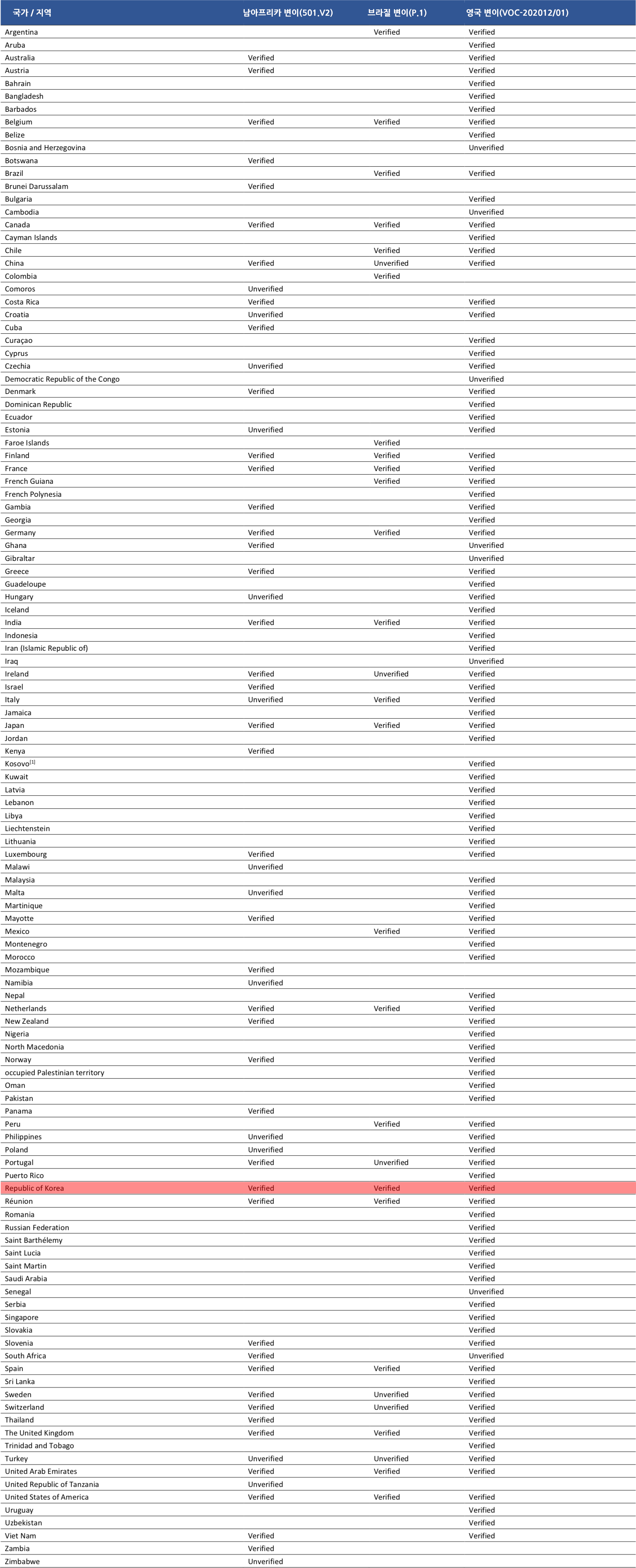 남아프리카 변이(501Y.V2 혹은 B.1.351): 56개국 확산, 지역감염 8개국