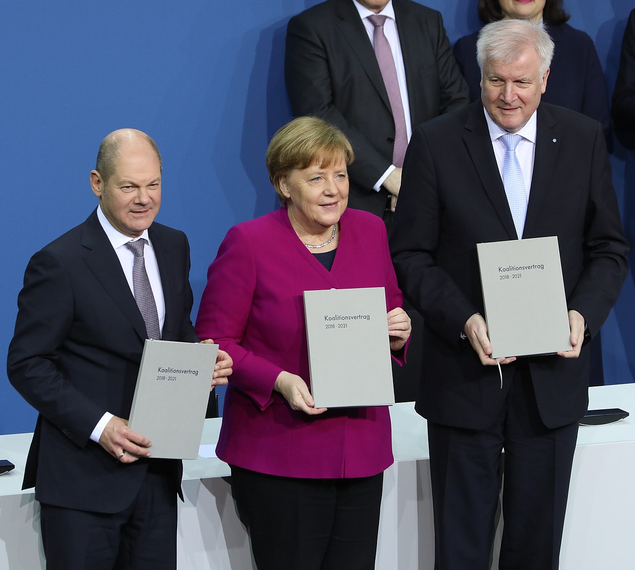 2018년 3월 14일, 기민련/기사연과 사민당이 대연정을 구성하며 메르켈 4기 내각이 출범했다. 올라프 숄츠가 연방 재무부 장관 및 부총리로 임명되었다. 그는 이전에 사민당 위한 연정 협정에 참여했고 임시 당 대표로서 당원 투표에서 대연정(GroKo)을 위한 SPD 기층의 동의를 성공적으로 끌어냈다.