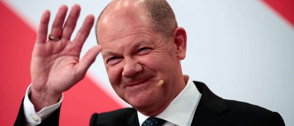 2020년 8월 10일, 사스키아 에스켄(Saskia Esken)과 노르베르트 월터-보르얀스(Norbert Walter-Borjans) 당대표의 제안으로 SPD 당 최고위원회는 숄츠를 2021년 연방 선거의 수상 후보로 지명했다. 당시 그는 여론조사에서 가장 인기 있는 사민당 정치인이었지만 당의 좌파 사이에서 과거 슈뢰더 총리의 신자유주의적 노선을 지지했던 것이 논란이 됐었다. 2021년 5월 9일 온라인으로 열린 당 대회에서 숄츠는 96.2%의 득표율로 총리 후보로 확정됐다.