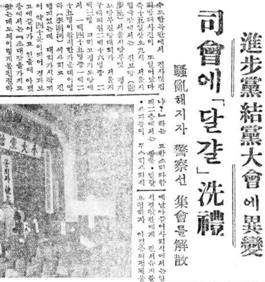 한국 정치사에서 항의의 음식이 처음 등장한 건 1957년 4월 15일 진보당 결성대회에 등장한 정체 모를 집단이 날린 계란과 사과다. 이들은 곤봉까지 들고 있었던 것으로 나중에 확인됐으며, 진보당 결성을 방해하기 위한 우파들의 조직적 방해 책동이었던 것으로 보인다.
