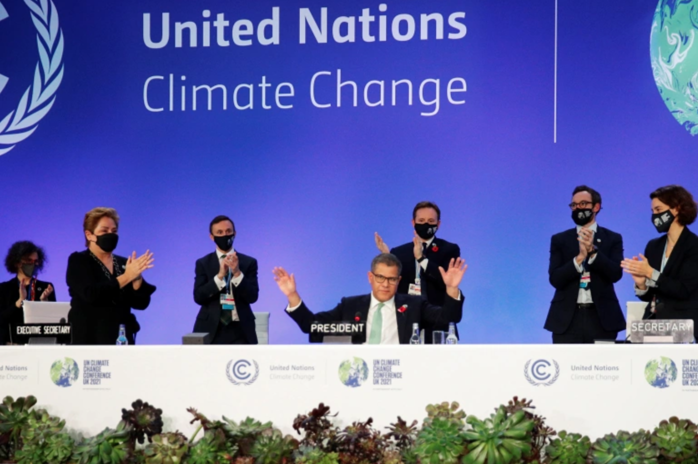 COP26 정상회의 의장인 알록 샤르마(Alok Sharma)는 "오늘 우리는 1.5도(섭씨)를 손이 닿는 범위 내에서 유지했다고 자신 있게 말할 수 있다고 생각합니다."라고 말했다. "하지만 그 맥박은 약하고, 우리가 약속을 지킬 경우에만 우리는 살아남을 것입니다."