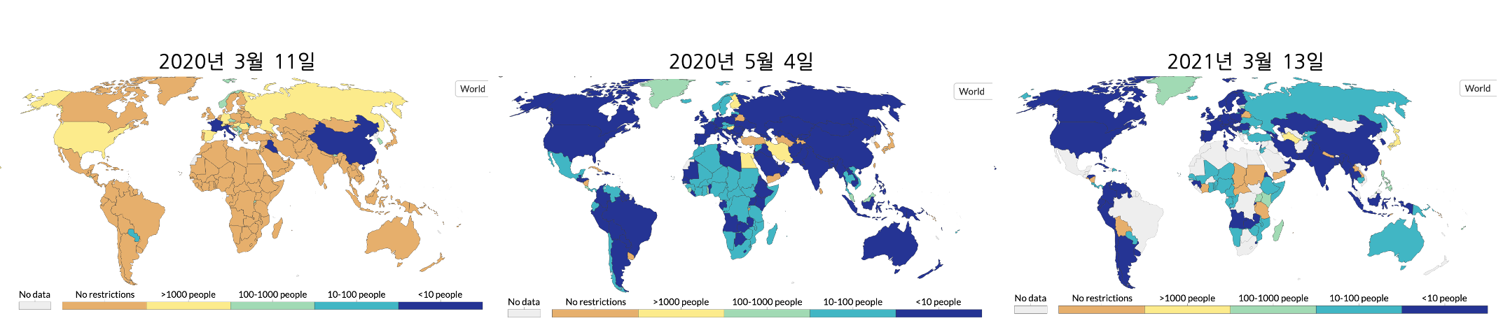 WHO의 대역병 선언 후 지금까지 약 1억2천만 명의 감염자와 260만 명의 사망자가 발생했으며, 그중에는 최소 17,000명의 의료종사자가 포함되어 있다. 이미 지난해 4월 초까지 인류의 절반 이상인 39억 명이 봉쇄의 삶을 살았다. 봉쇄는 무엇보다도 공공 집회와 사교 모임의 금지로 나타났다. 2020년 3월 11일 대역병 선언 당시 10인 이하의 집회 금지는 중국과 이탈리아, 스페인 3개국에 불과했지만, 봉쇄가 정점에 이른 4월 말과 5월 초 10인 이하 집회 금지는 전 대륙으로 퍼져나갔고, 아직도 적지 않은 국가들이 이 조치를 고수하고 있다.