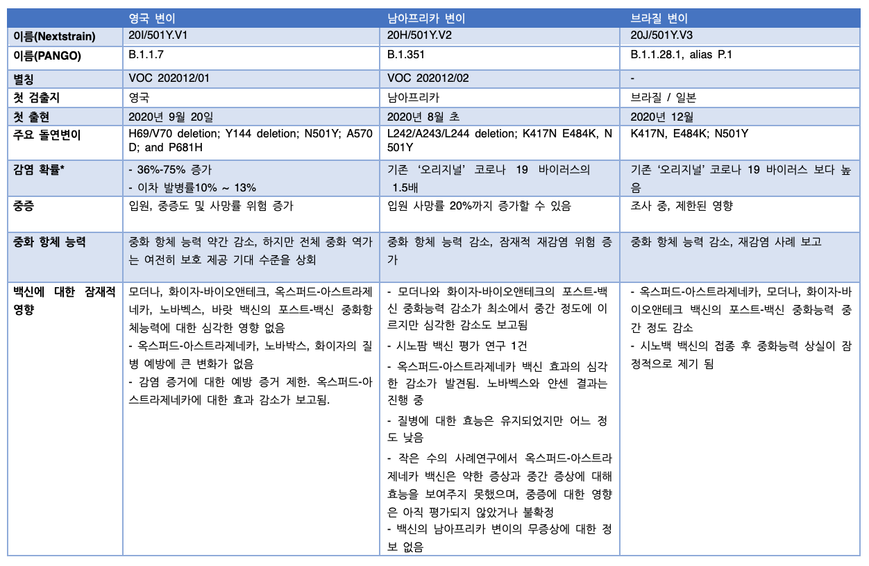 1. 코로나 19 영국, 남아프리카, 브라질 변이와 백신 효과