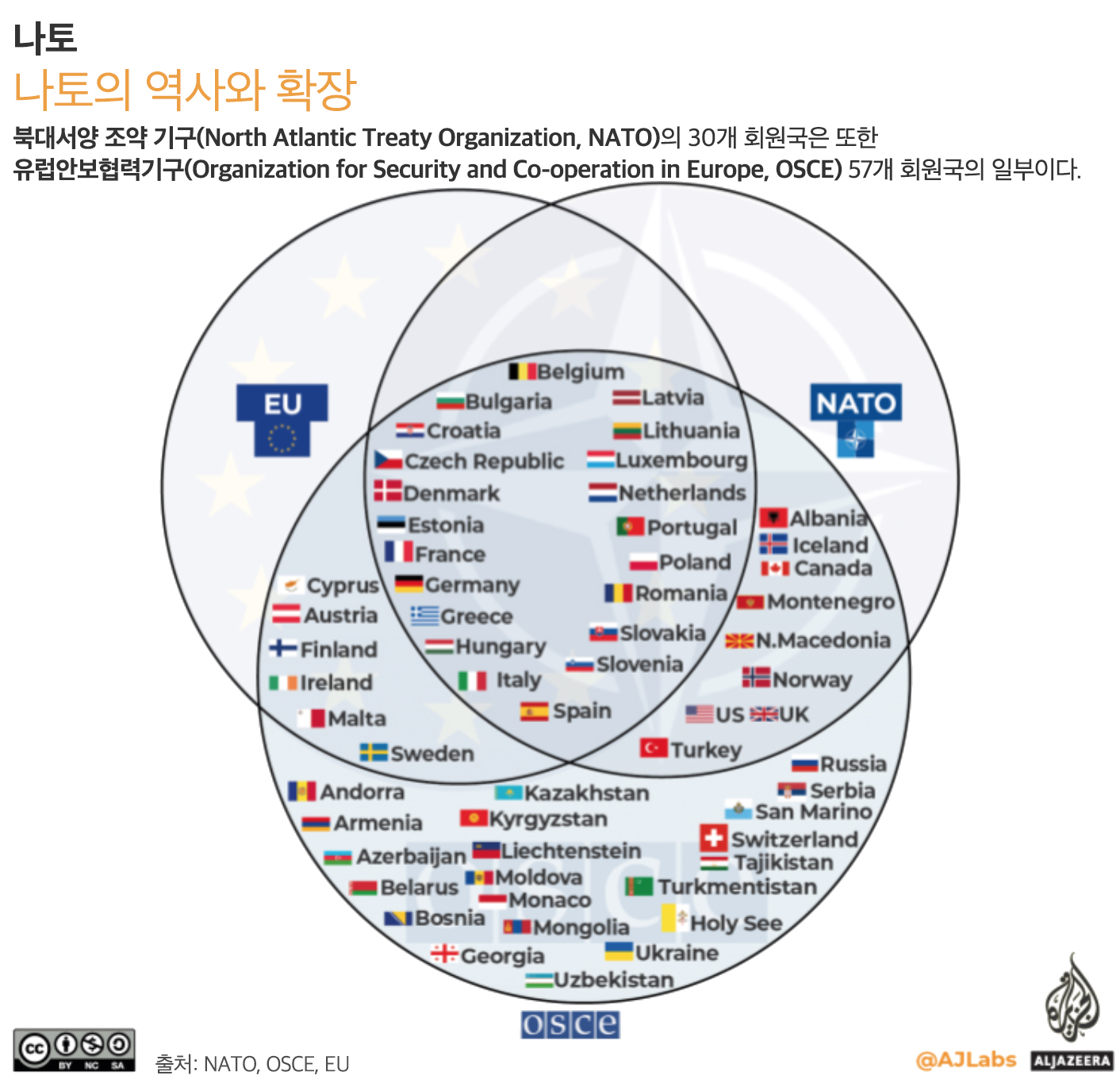 나토, 유럽안보협력기구 및 유럽연합 회원국