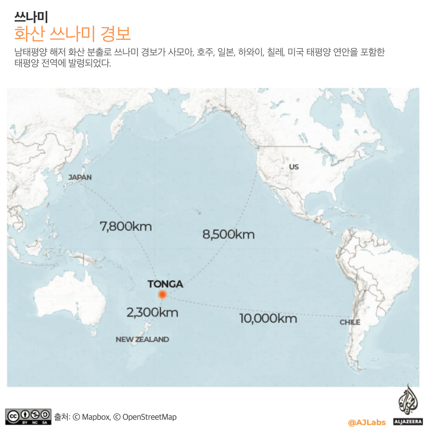 지도와 차트로 설명하는 통가의 화산 폭발과 쓰나미