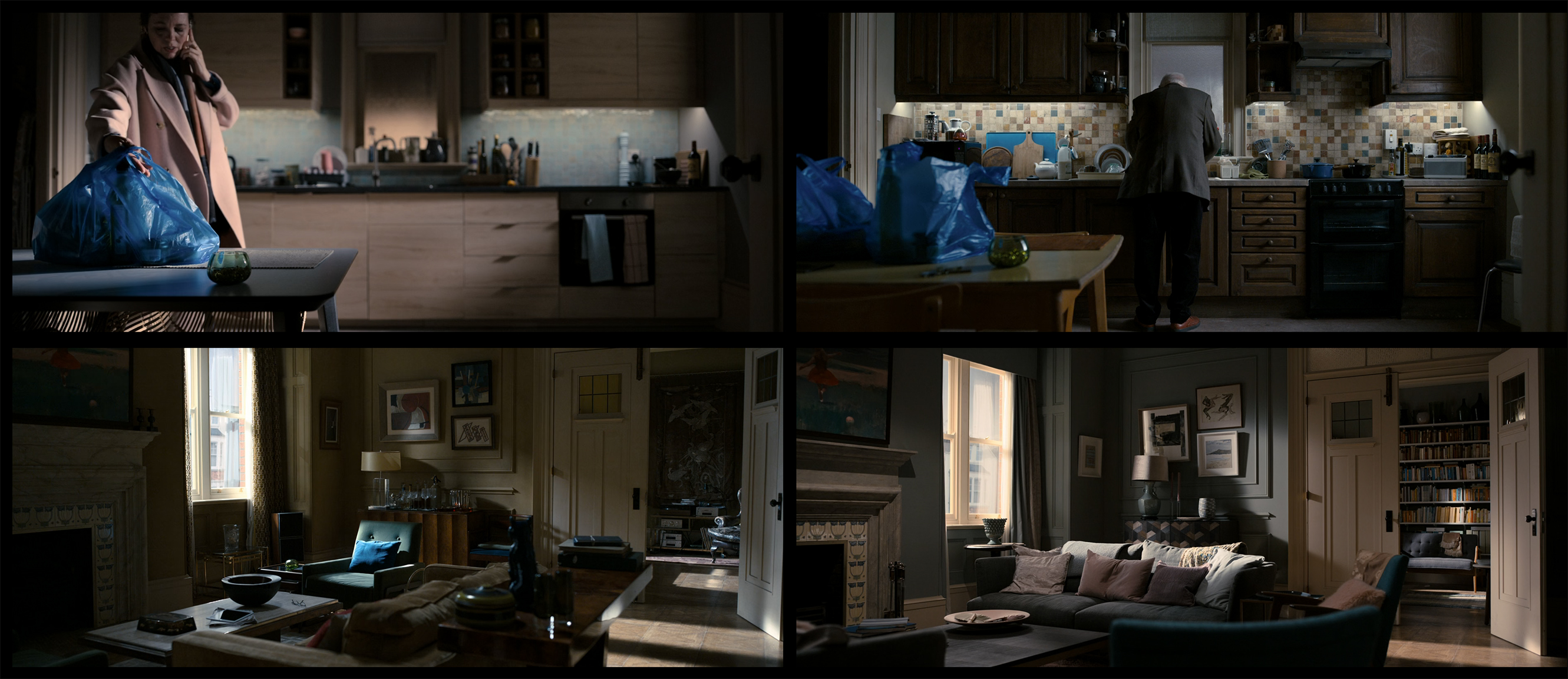 앤서니에게 공간은 사건이 발생하는 곳도, 다른 이들과 관계를 맺는 곳도, 열려 있는 곳도 아니다. 그의 공간은 늘 쪼그라든 실내며, 그의 자리는 늘 그 실내에 머물러 있다. 딸도, 그의 돌보미도, 간호사도 그에게 산책하자고 하지만 그는 자신의 아파트, 병원, 진료실에 머물러 있다. 그와 외부를 연결하는 것은 창문이다. 그는 창밖을 통해 그의 딸이 거리를 건너는 것을, 철없는 아이가 바람에 날리는 비닐봉지를 가지고 노는 것을 보며 부러운 시선을 보낼 뿐 밖으로 나갈 수 없다. 그가 지속해서 자신의 공간, 자신의 아파트(flat)라 주장하는 곳은 실은 아내와 사위의 공간이며, 그의 임시 거처일 뿐이다. 더욱이 그 실내 공간은 불확실하다. 파란 비닐봉지가 놓인 식탁도, 부엌 가구도, 타일도 매번 다르며, 거실과 그 가구와 장식품도 매번 다르다. 부엌과 거실, 침실이란 공간은 같지만, 매번 다른 장소에 그는 놓여 있다. 왜냐하면 그가 거주하는 그 공간은 그의 머릿속에 존재하는 가상의 공간일 뿐이며, 치매로 불안정한 그 공간은 매번 바뀐다.