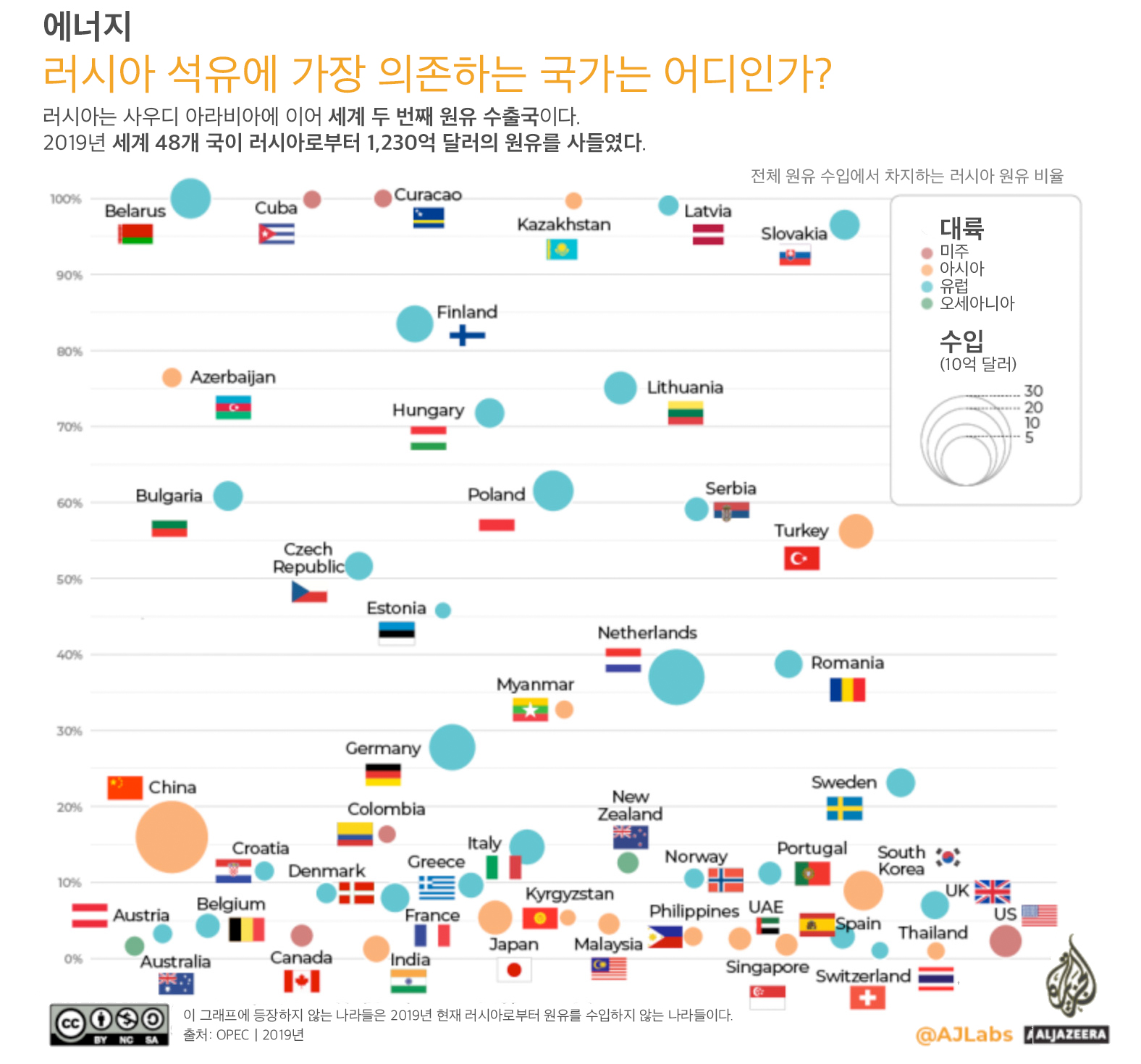 인포그래픽: 여러분 나라의 석유 중 얼마나 많은 양이 러시아로부터 오는가?