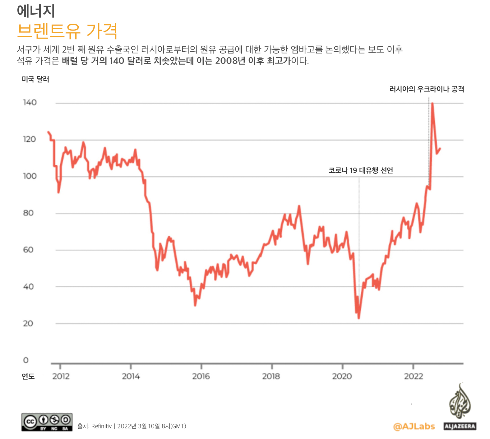 지난 2월 24일 러시아의 우크라이나 침공으로 유가가 급등했다.