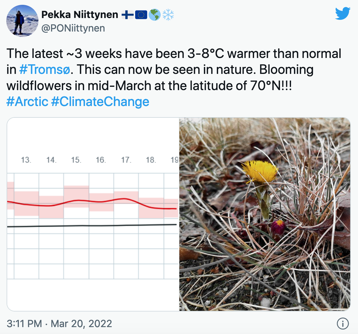 그리고 기후 변화가 원인일까? 그럴 수 있다. 확신하기에는 너무 이르지만 우리는 기후 변화로 인해 극지방 폭염이 더 흔해지고 심각해지고 있으며 극지방이 지구 평균보다 더 빠르게 온난화되고 있다는 것을 알고 있다.