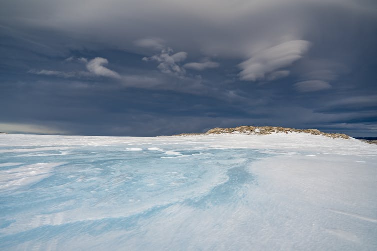 설상가상으로, 남극의 얼음 고원 위로 구름이 덮여 지표면에서 방출되는 열을 가두었다.