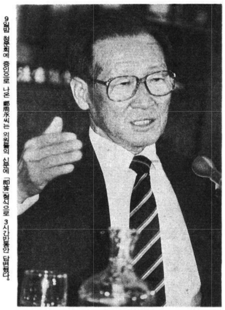 정주영은 정치 입문을 선언한 1992년 1월 기자회견을 통해 박정희 정권 때 "처음에 추석과 연말에 매년 5억 원을 내다 나중에는 20억 원씩, 5공 때는 추석 때 20억 원 연말에 30억 원씩 각각 냈으며, 6공 들어서는 액수를 늘려 한번에 50억 원을 내고 마지막에는 한 번에 100억 원까지 냈다"라고 밝혔다. 기업들은 박정희 정권 당시 전경련 주도로 1968년 '정경간담회'를 발족해 약 1억 원을 선관위에 제공했다. 이 간담회는 1970년 다시 소집되어 기업을 규모별로 그룹으로 묶어 그룹당 3천~5천만 원을 모금했고, 정주영이 전경련 회장이 된 1977년에는 3억 5천만 원을 모금했다. 현대와 삼성 등 규모가 큰 10대 재벌은 5백만 원 이상을 냈다. 정주영의 1992년 발언은 이런 공식 루트 외에도 비공식 경로로 정치자금을 제공했음을 의미한다. 모든 거래가 그렇듯 '권력의 강압에 의한 일방적 정치자금 제공'은 기업이 받은 더 큰 대가가 누락된 기업 측이 일방적으로 쓴 동화에 불과하다.