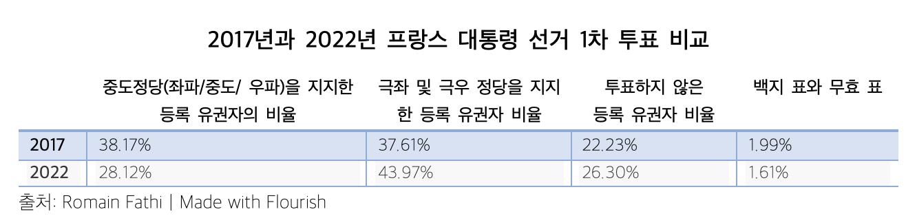 프랑스 5 공화국 역사상 이러한 극단주의 정당이 좌파와 중도, 우파의 온건 정당보다 더 많은 표를 얻은 적이 없었다.