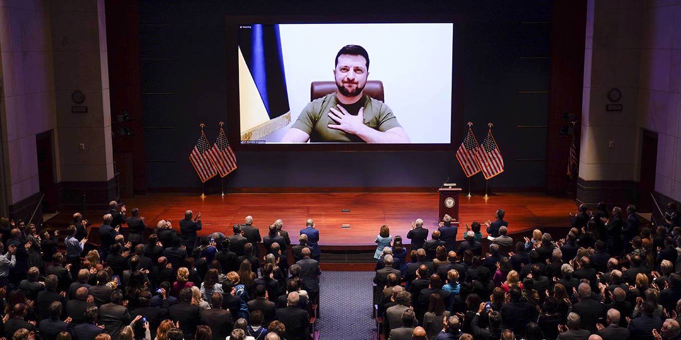 젤렌스키의 텔레비전 배우로서의 이전 경험은 그에게 도움이 되었다. 비공식적인 복장과 서방 언론 및 의회와의 끊임없는 소통으로 그는 우크라이나를 매력적이고 영웅적인 국가로 대표하는 데 성공했다. 그 결과는 서방의 동정뿐 아니라 우크라이나가 당면한 하드 파워 과제에 필요한 군사 장비의 공급이 크게 증가한 것이다.