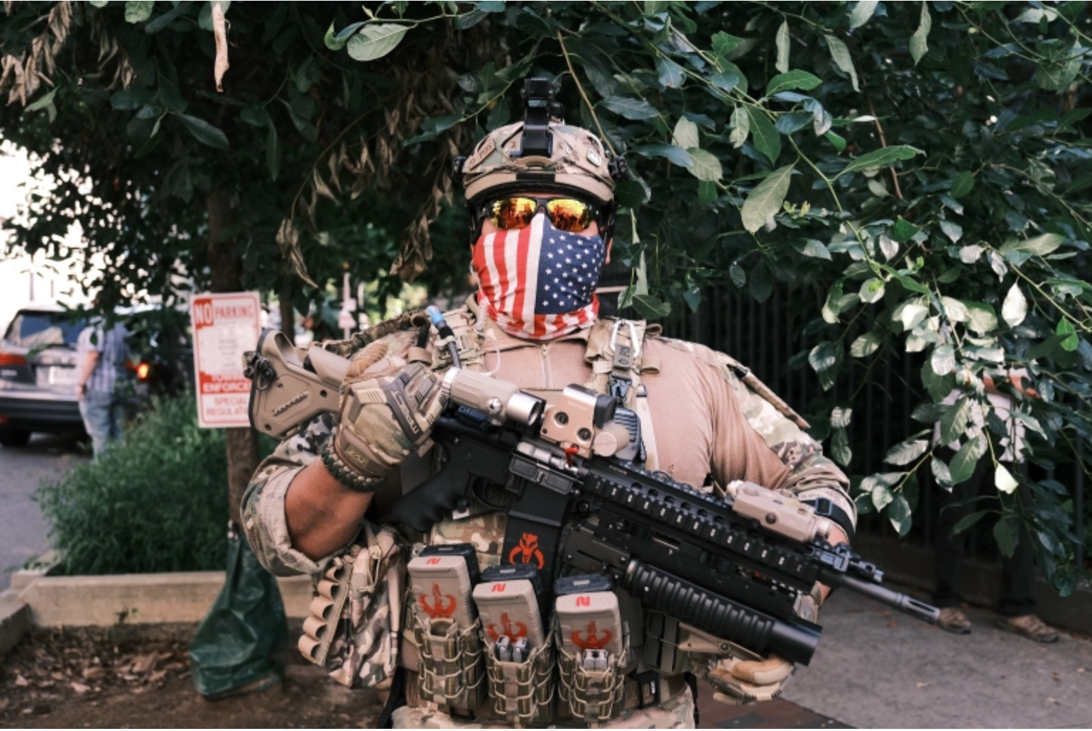 한편 "무장한 자립적인 시민"은 특히 여러 주에서 주민들이 허가나 훈련 없이 권총을 소지할 수 있도록 하는 기발한 법을 제정함에 따라 더욱 그렇게 되었다. 2017년 현재, 미국에는 이미 "사람보다 더 많은 총"이 존재한다고 워싱턴 포스트가 보도하면서, "주민 100명당 120.5문의 총"이 있다는 연구 결과를 인용했는데, 이는 세계에서 가장 터무니없는 비율이다.