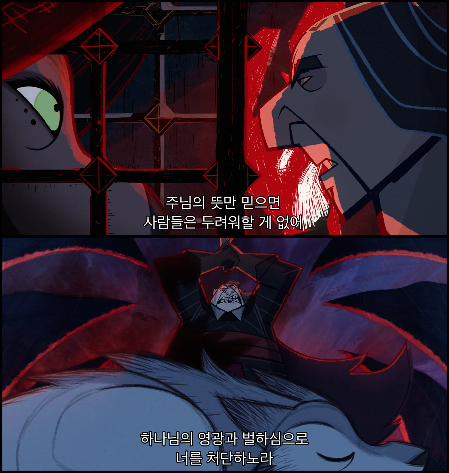늑대는 인간의 정체성을 버린 야수가 아니라 그 자체로서 별도의 존재인 것이다. 로빈과 울프워커는 인간과 늑대, 문명과 자연의 다리다. 그리고 그들은 단수가 아니라 공동체다. 그래서 영화 제목은 울프워커Wolfwalker라는 단수가 아니라 울프워커스Wolfwalkers라는 복수다. 로빈과 메브의 사랑은 에로스와 필리아의 사랑이다. 빌과 로빈, 메브와 몰의 사랑은 스트로게의 사랑이다. 그리고 몰이 자신의 숲을 베는 농부를 치유하고, 울프워커인 메브가 늑대를 잡으려고 쳐 놓은 올가미에 걸린 로빈을 구하고, 로빈이 목숨을 걸고 늑대 몰을 구하고, 빌이 몰의 회생이 참여하는 이 모든 것은 조건이 없는 아가페적인 사랑이다.