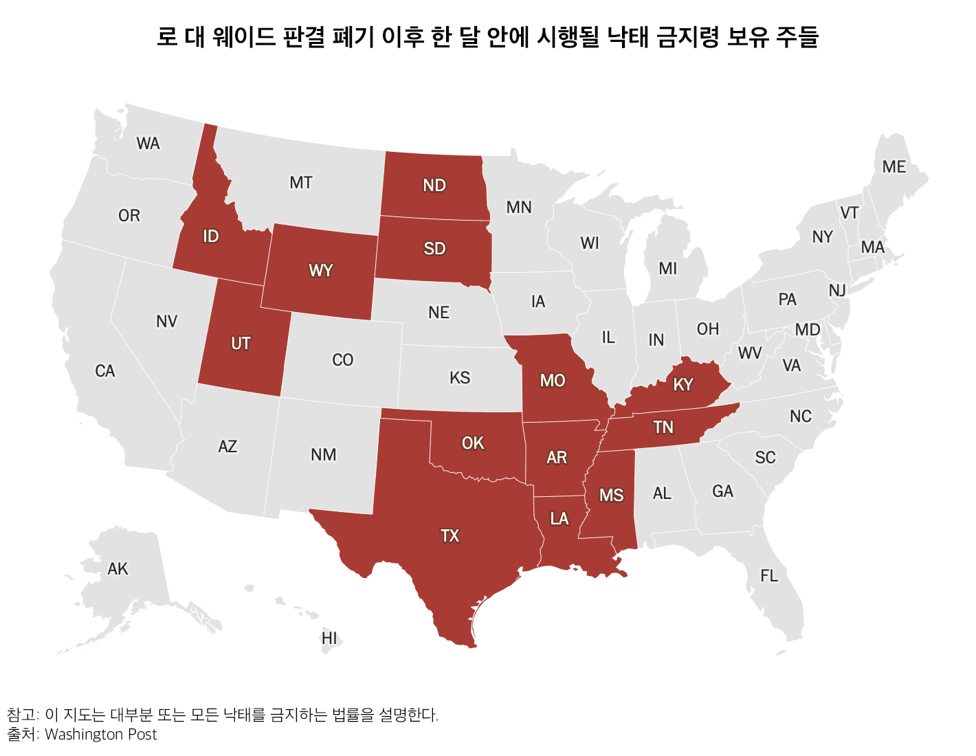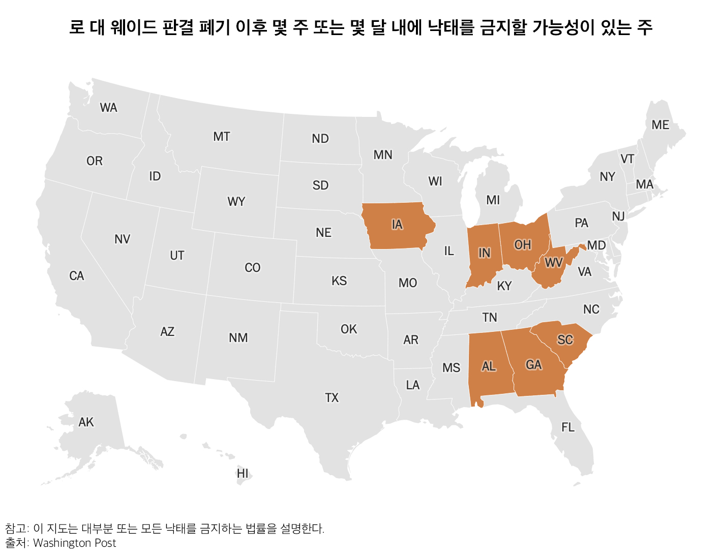 곧 13개 주에서 낙태가 금지될 것이다. 다음과 같은 상황이 될 수 있다.
