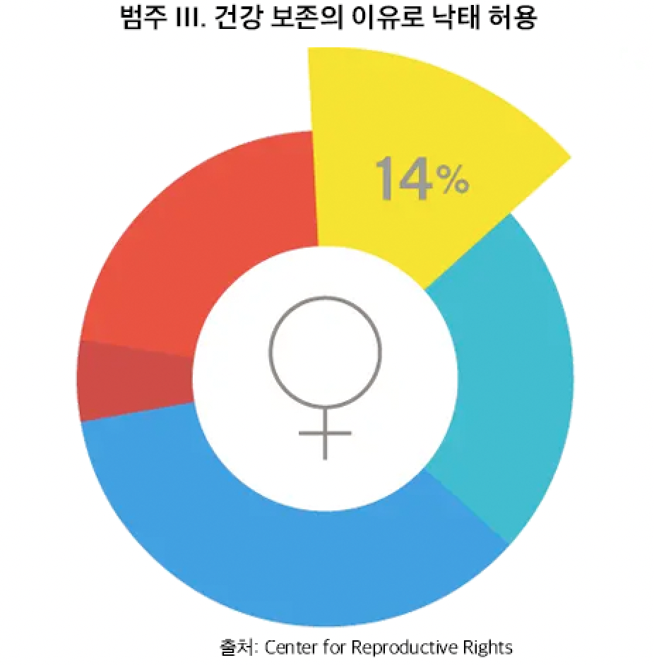 세 번째 낙태 허용 범주는 건강 또는 치료적 이유를 가지는 경우 낙태를 허용한다. 전 세계 생식 연령 여성의 14%인 2억 2,500만 명이 건강상의 이유로 낙태를 허용하는 나라에 살고 있다.