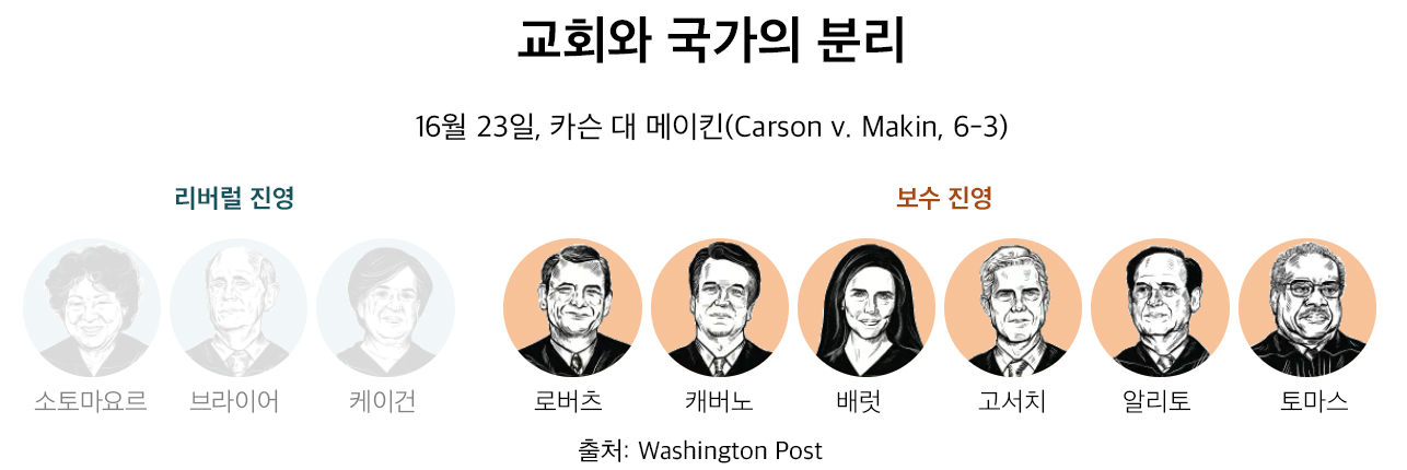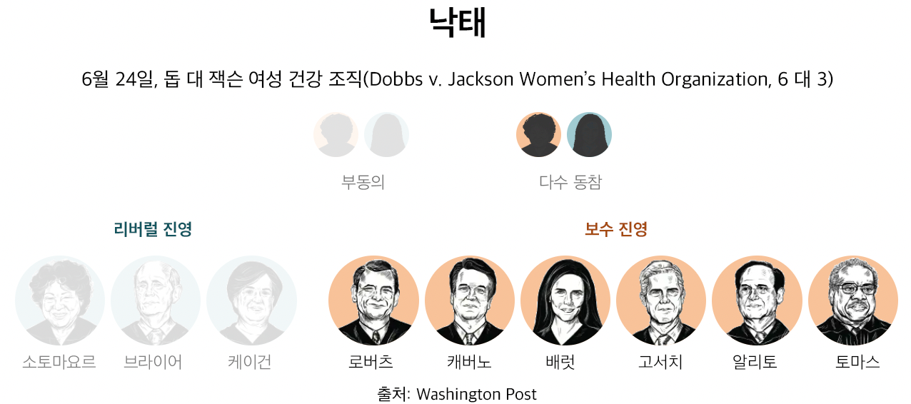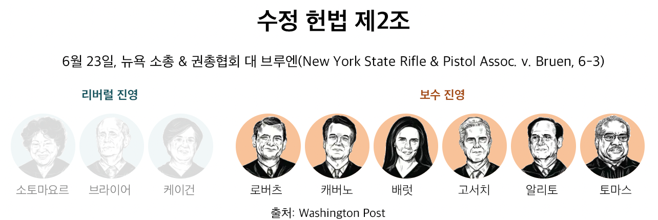 ■ 역자 주: 트럼프에 의해 보수 진영이 6명으로 리버럴 혹은 진보 진영 3명을 압도하고 있는 미국 연방 대법원의 최근 판결 행보는 그 어느 정당보다도 정파적이어서 미국 사회를 더욱 깊숙한 당파적 분열로 몰아넣고 있다. 미국 연방차원에서 여성의 낙태에 대한 헌법적 권리를 인정한 1973년 대법원 로 대 웨이드(Roe v. Wade) 판결을 최근 돕 대 잭슨 위민스 헬스 오가니제이션(Dobbs v Jackson Women’s Health Organization)에서 파기한 미국 대법원은 낙태 문제뿐만 아니라 총기 휴대, 기후변화, 이민, 공중보건과 백신 의무화, 종교와 국가, 원주민 문제 등에서 거침없는 정치적 행보를 밟고 있다. 이러한 행보는 1930년대 정치 경제 엘리트의 권력을 억제하기 위한 국가와 행정 기관의 규제와 개입에 대한 전반적인 공격으로 이어지고 있어서 사회적 강자들의 이익으로 이어질 수 있다는 우려를 빚어내고 있다. 중립적인 법과 법원의 이미지는 트럼프 대통령 이후 대법원에 의해 거의 사라지고 말았다. 이 글은 위싱턴포스트 6월 30일 자 기사 How the Supreme Court ruled in the major decisions of 2022의 번역으로 대법원의 최근 논란이 되고 있는 낙태, 총기, 기후 변화, 이민, 백신 의무화, 종교와 국가, 종교 자유, 국가 기밀, 사형과 종교, 원주민 문제 등에 대한 판결의 주요 쟁점과 그 쟁점 별 대법원 보수-진보 표결을 분석하고 있다.
