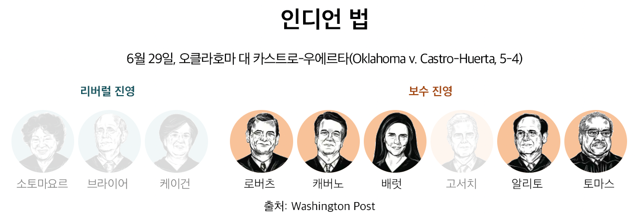 다수는 오클라호마주의 편을 들며, 주 당국자들이 인디언(Indian)**이 아닌 사람들이 부족 보호구역 내에서 미국 원주민(Native Americans)에 대해 저지른 범죄에 대해 기소할 권한이 있다고 말했다. 부족 지도자들이 비판한 이번 결정은 툴사시를 포함한 오클라호마주의 약 40%를 인디언 땅으로 재분류하고 일부 형사기소를 부족과 연방법원으로 이관한 2020년 판결의 범위를 제한하고 있다.
