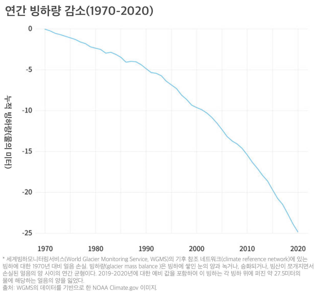 녹아내리는 세계의 빙하: 1970년 이래 27.5미터 두께 감소
