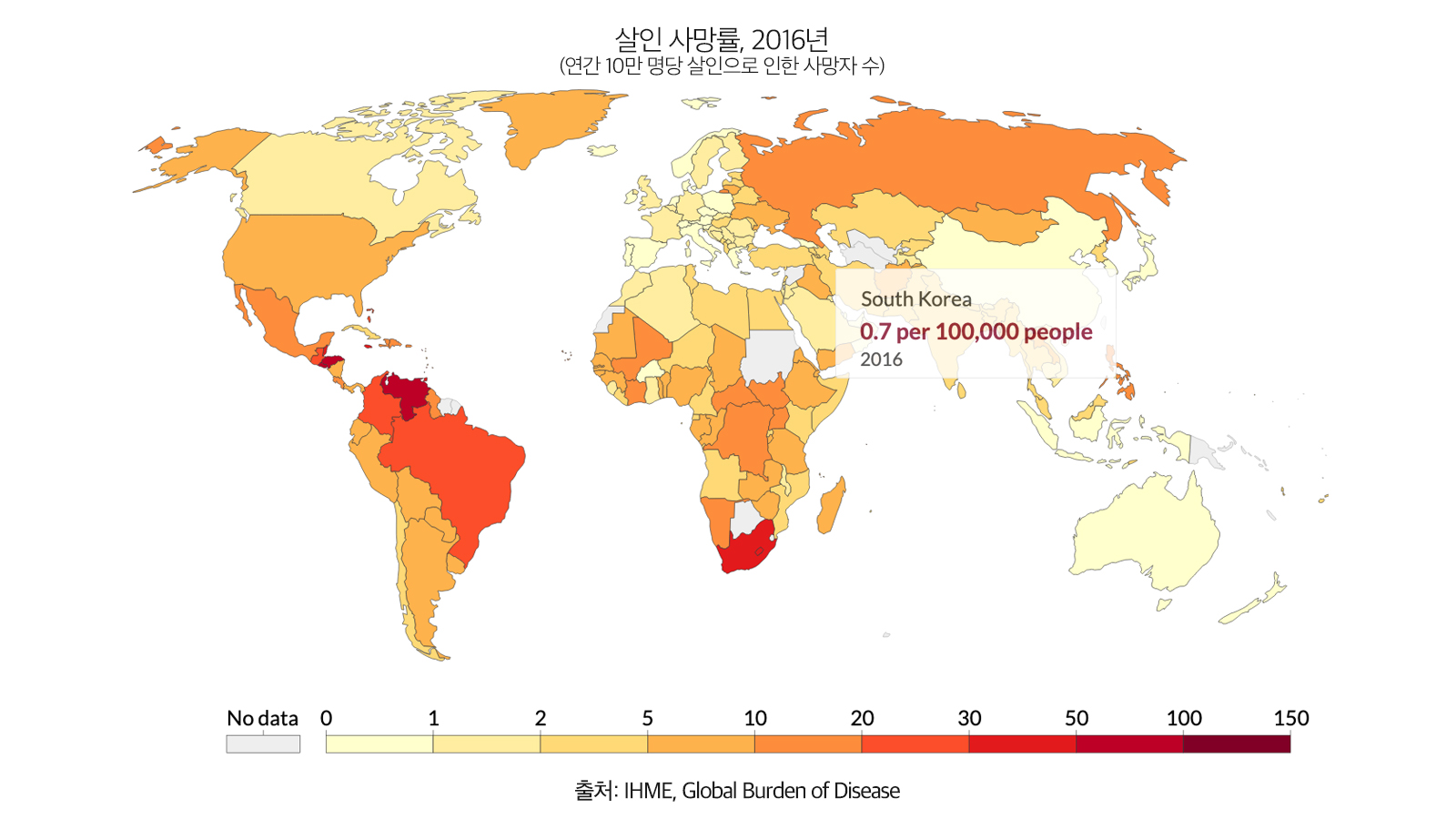 이번 글에서는 사망 원인 중 고의적 혹은 의도적 상해(Intentional injuries)라 불리는 자살, 살인, 테러의 세가지 사망원인에 대해 다룬다. 이 글에서는 자살과 살인, 테러로 사망하는 세계와 한국의 사망자 수, 연령별 영향과 사회적 함의를 간략히 살펴 본다.