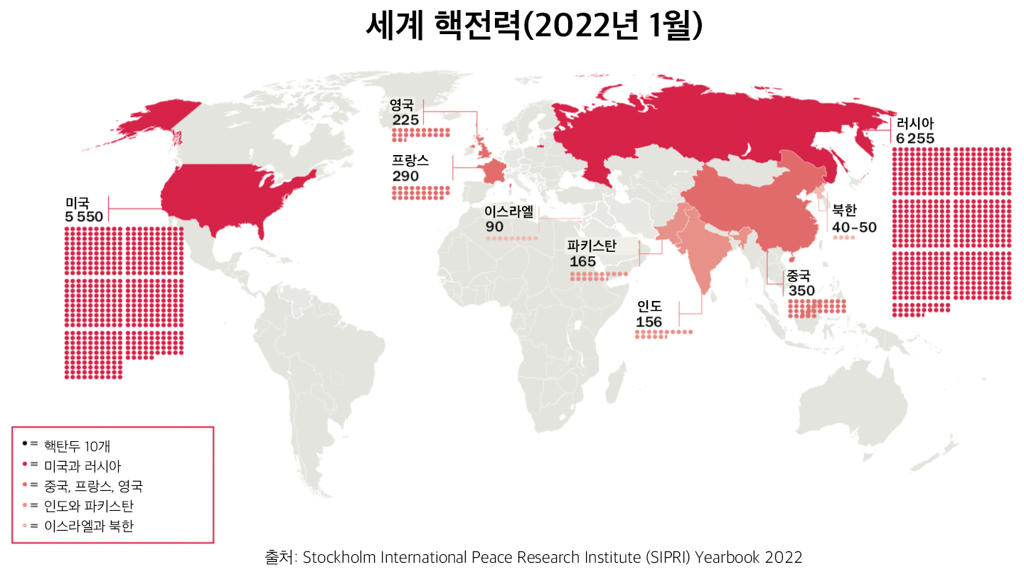 각국의 보유 핵무기의 정확한 수는 국가 기밀이므로 여기에 제시된 추정치는 상당한 불확실성을 가지고 있다. 비밀의 정도도 나라마다 상당히 다르다. 2010년과 2018년 사이에 미국은 총 비축 규모를 공개했지만, 2019년 트럼프 행정부는 그 관행을 중단했다. 다행히 2020년 바이든 행정부는 핵 투명성을 회복했다. 대부분의 핵무장 국가는 기본적으로 그들의 핵 비축량에 대한 정보를 제공하지 않는다. 때문에 기관별로 추정치는 다를 수 있다. 스톡홀름 국제평화연구소 (Stockholm International Peace Research Institute, SIPRI)는 미국의 핵탄두를 5,550개, 러시아는 6, 255, 북한은 약 40-50개로 추정하지만 FAS는 미국과 러시아, 북한의 핵탄두를 각각 5,428개, 5,977개, 20개로 추정해 차이가 있다.