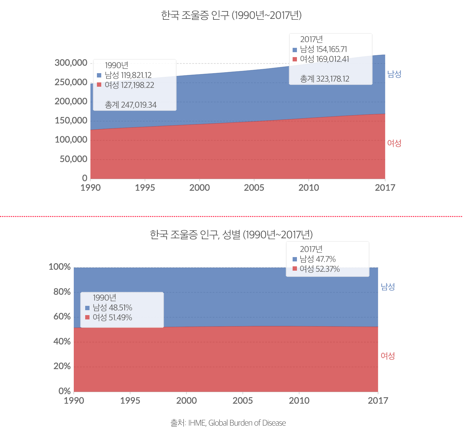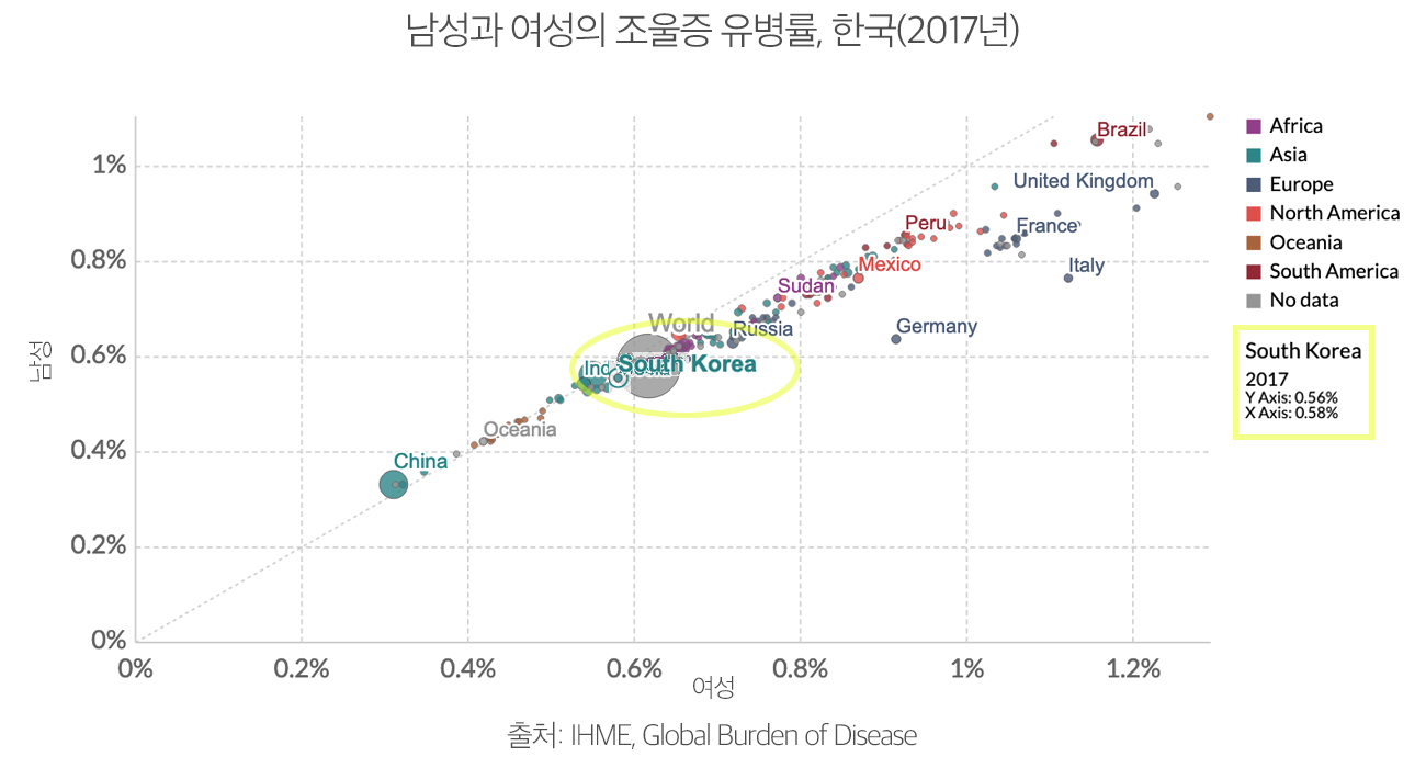 한국, 조울증 남녀 성별 비율에서 여성 비율 상승