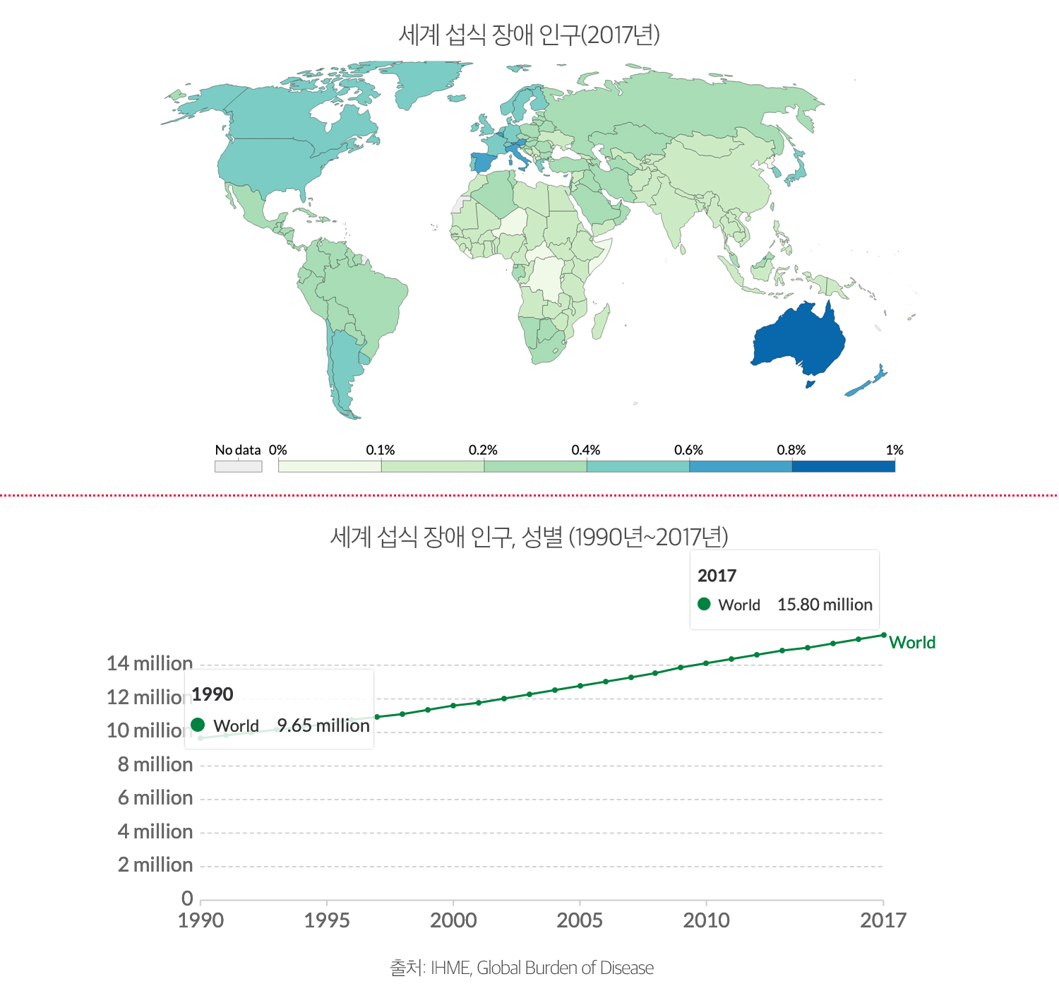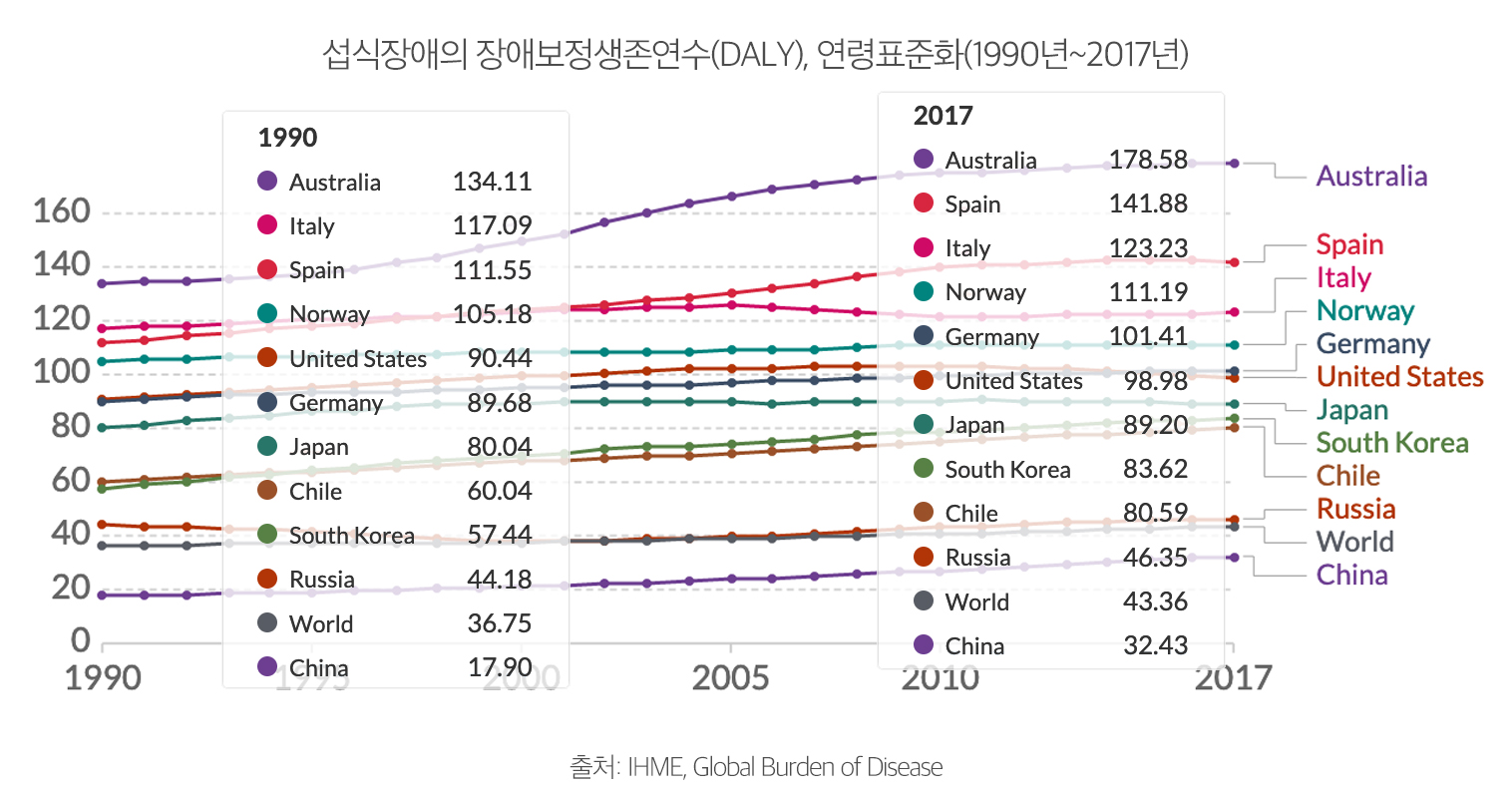 한국: 섭식장애 장애보정생존연수 상승률 세계 10번째