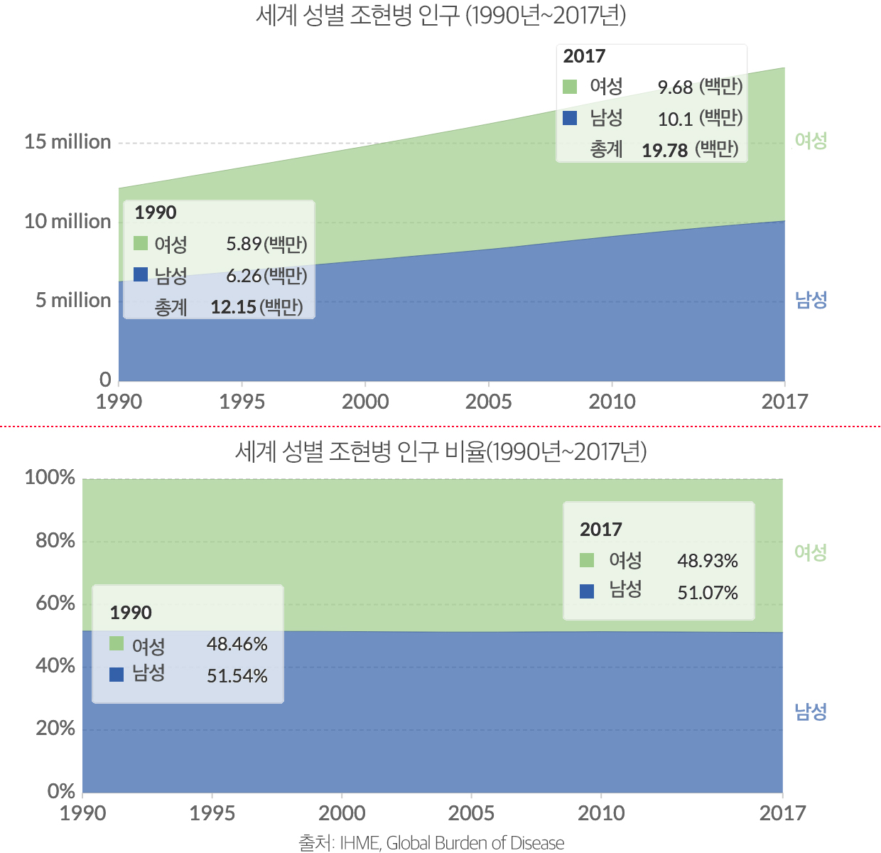 세계 조현병 인구는 1990년 1천2백만 명에서 2017년 1천9백만 명으로 약 63% 증가했다.