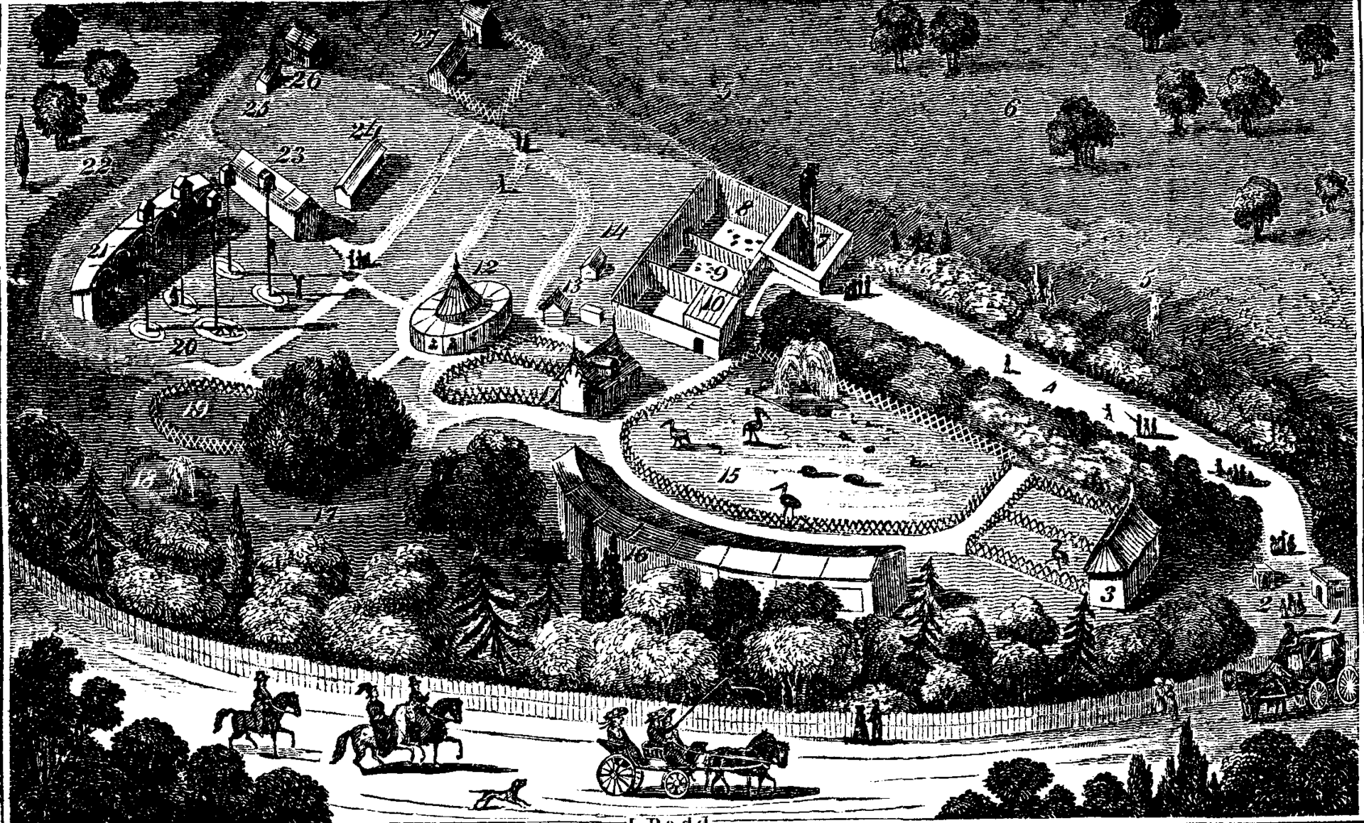프랑스는 17세기에 무대 싸움을 위해 동물원을 시작했다. 동물들은 운동을 위한 작은 마당이 있는 원형 극장 아래의 작은 우리에 갇힌 인클로저에 배치되었다. 1600년대 후반, 베르사유 동물원은 유원지로 지어졌다. 이국적인 동물들은 방문객들을 위한 파빌리온을 마주하는 원형으로 배열된 인클로저에 보관되었으며 이 틀은 다른 유럽 통치자들에 의해 모방되었다.