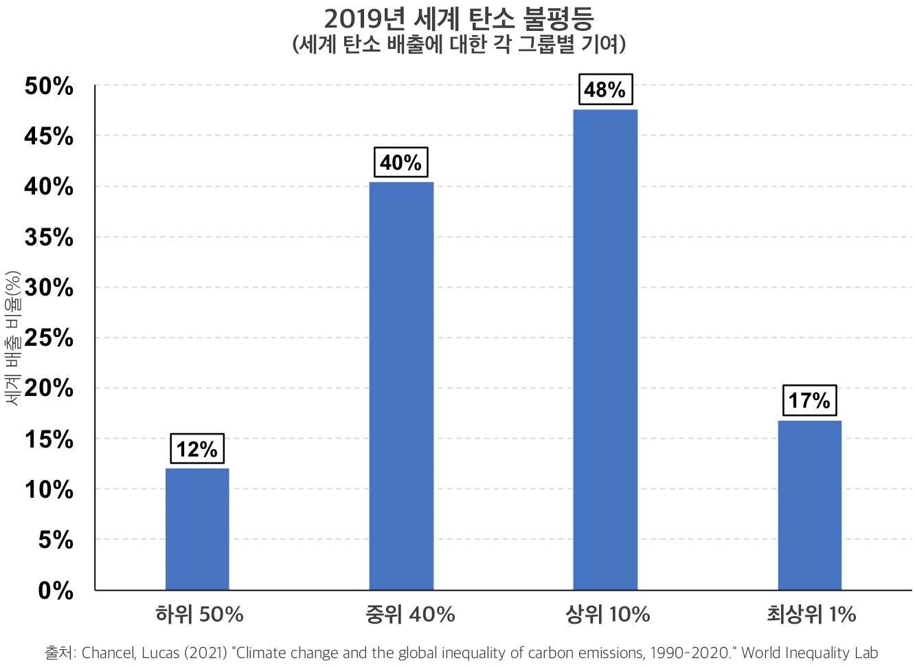세계의 탄소 배출 불평등: 상위 10% 배출량, 하위 50% 배출량의 4배