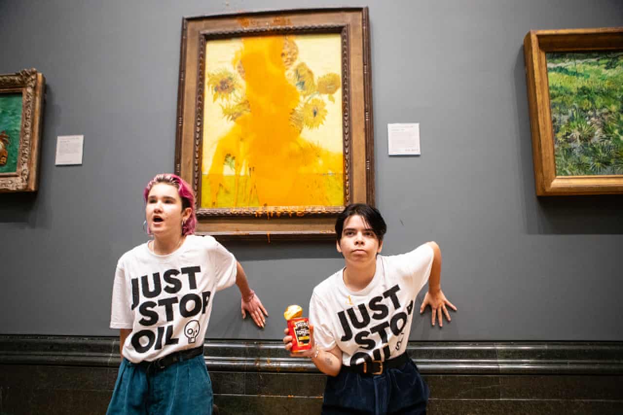 유럽의 기후 활동가들은 최근 기후 위기에 직면해 세계적 명화에 음식물을 투척하는 새로운 전술을 선보였다. 10월 14일 기후 활동 단체인 저스트 스톱 오일(Just Stop Oil) 활동가 2명은 영국 국립 미술관의 빈센트 반 고흐의 상징적인 그림인 '해바라기'에 토마토 수프를 던진 후 접착제로 자신의 손을 벽에 붙였다. 이어 10월 23일 독일 포츠담 바르베리니 미술관에서 독일 단체 레츠테 게네라치온(Letzte Generation) 소속 시위대가 클로드 모네의 그림에 으깬 감자를 던지고 벽에 손을 접착했다. 뭉크의 '절규', 페르메이르의 '진주 귀고리를 한 소녀' 등도 이러한 수난의 예외가 되지 못했다. 새로운 전술은 분명히 세인의 관심을 끌겠다는 목표를 달성했지만, 기후 운동가들이 거리에서 플래카드를 들고 있는 것을 보는 데 익숙한 일부 사람들에게는 이러한 창의적인 스턴트가 다소 당혹스러웠다. 이들이 기후 위기라는 이름으로 예술작품에 음식을 던지는 이유는 그들의 주장만큼 명확한 메시지를 전달하지 못하고 있다.
