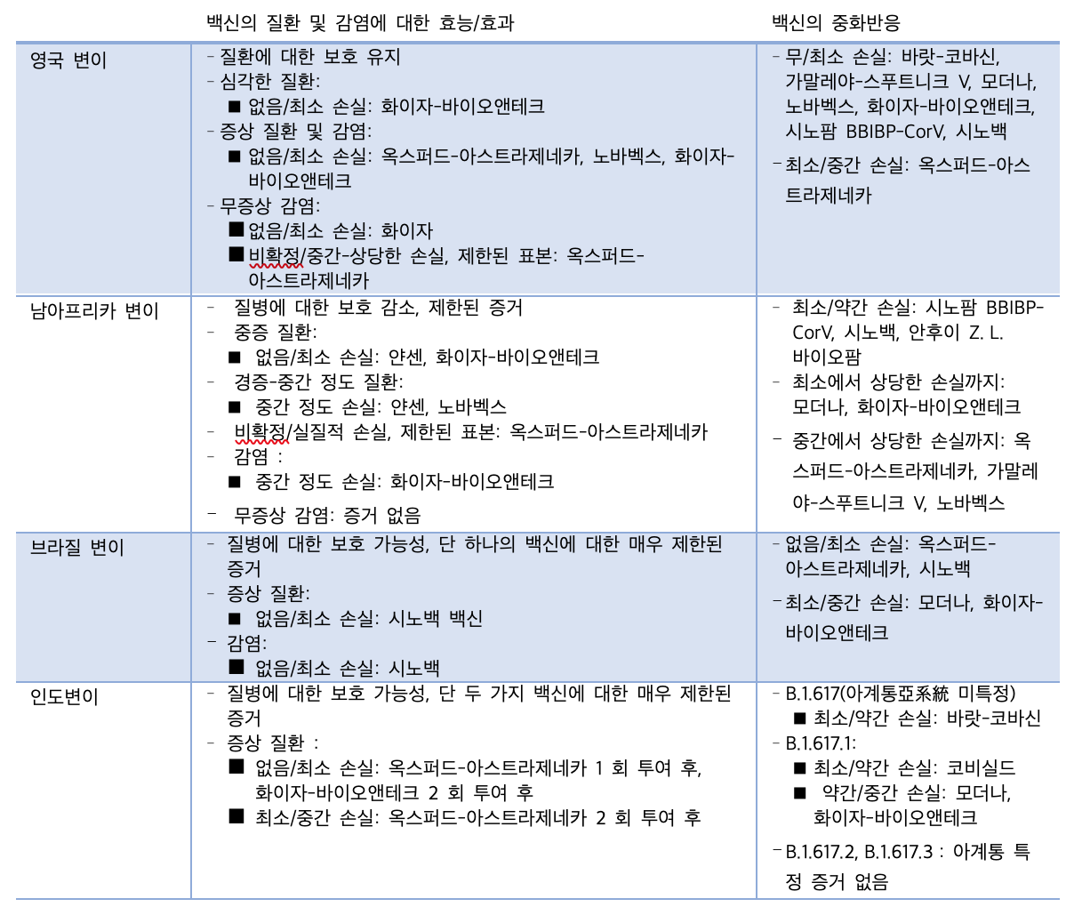 코로나 19 변이에 대한 백신 효과