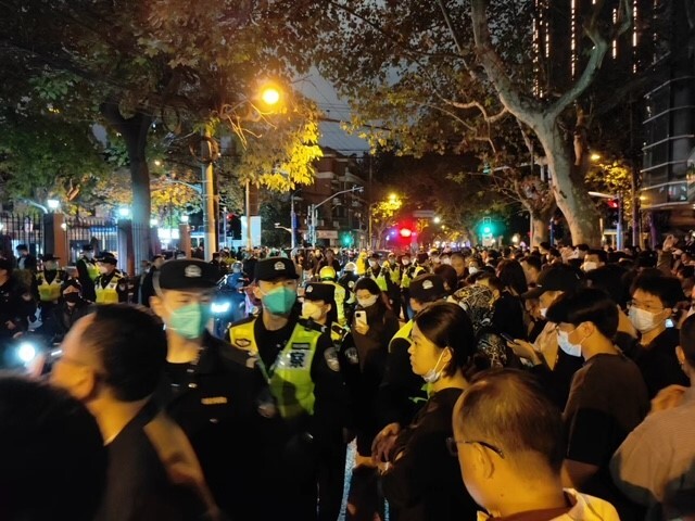 지난주 신장 우루무치에서 많은 사람들이 코로나 19 봉쇄를 비난하는 중국 신장 지역의 주택 건물에서 치명적인 화재가 발생한 후, 중국 시위자들은 엄격한 전염병 제한의 중단을 요구하기 위해