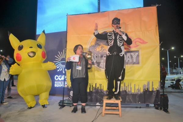 COP27에서는 온난화 대책에 소극적이라며 이번에도 일본이 화석상을 수상했다. 2022년 11월 9일, 이집트 샤름엘셰이크. 사진: 朝日新聞