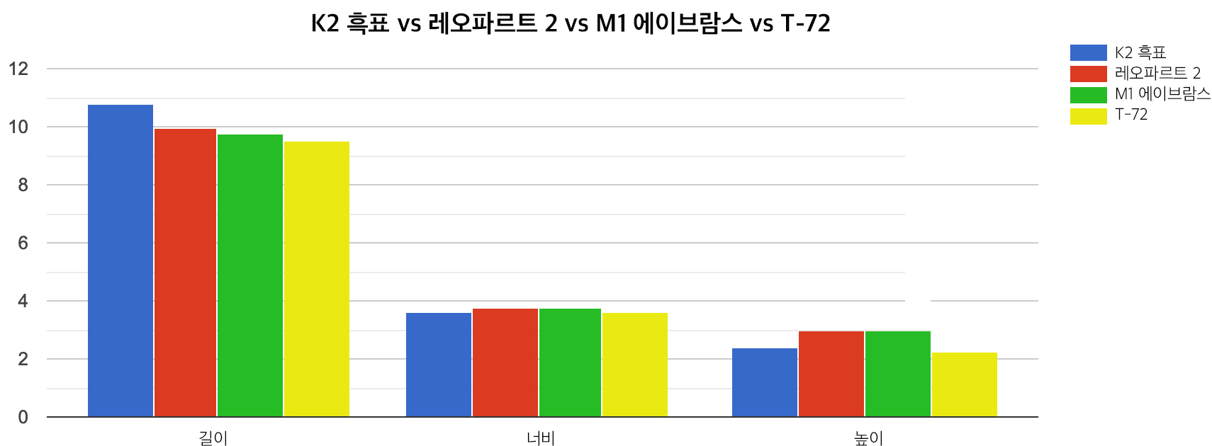 K2 흑표 | 레오파르트 2 | M1 에이브람스 |