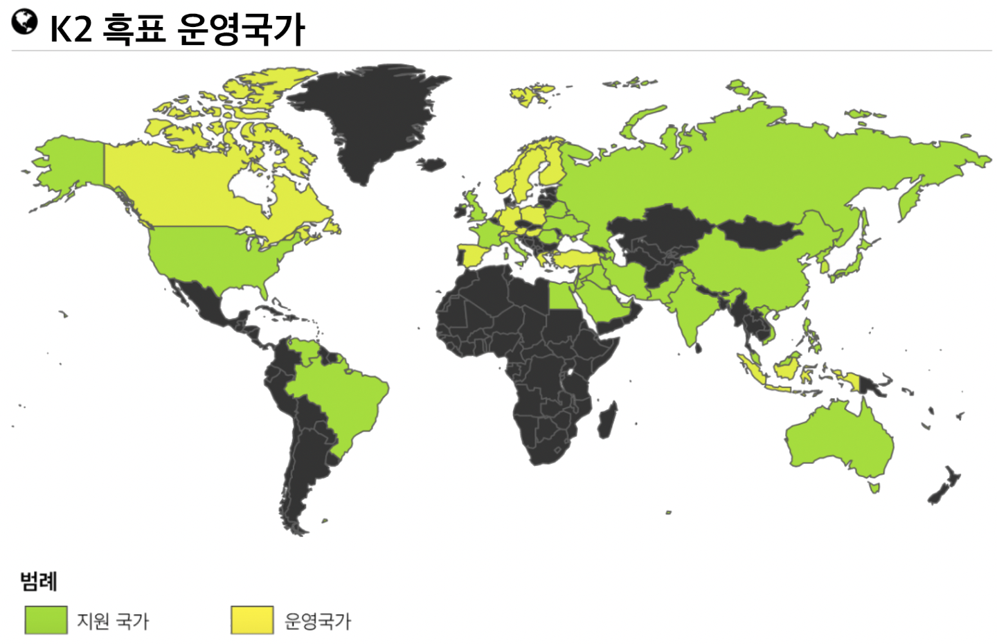 최근 우크라이나에 대한 독일의 레오파르트 2 공급을 둘러싼 우유부단함으로 한국 탱크 K2 흑표에 대한 수요가 러시아와 접경한 동구권 국가들을 중심으로 늘어나고 있다. 현재 전 세계 국방전문가들로부터 가장 강력한 탱크 혹은 전차로 인정받는 것은 한국의 K2 흑표, 미국의 M1 에이브람스, 독일의 레오파르트 2 3종이다.