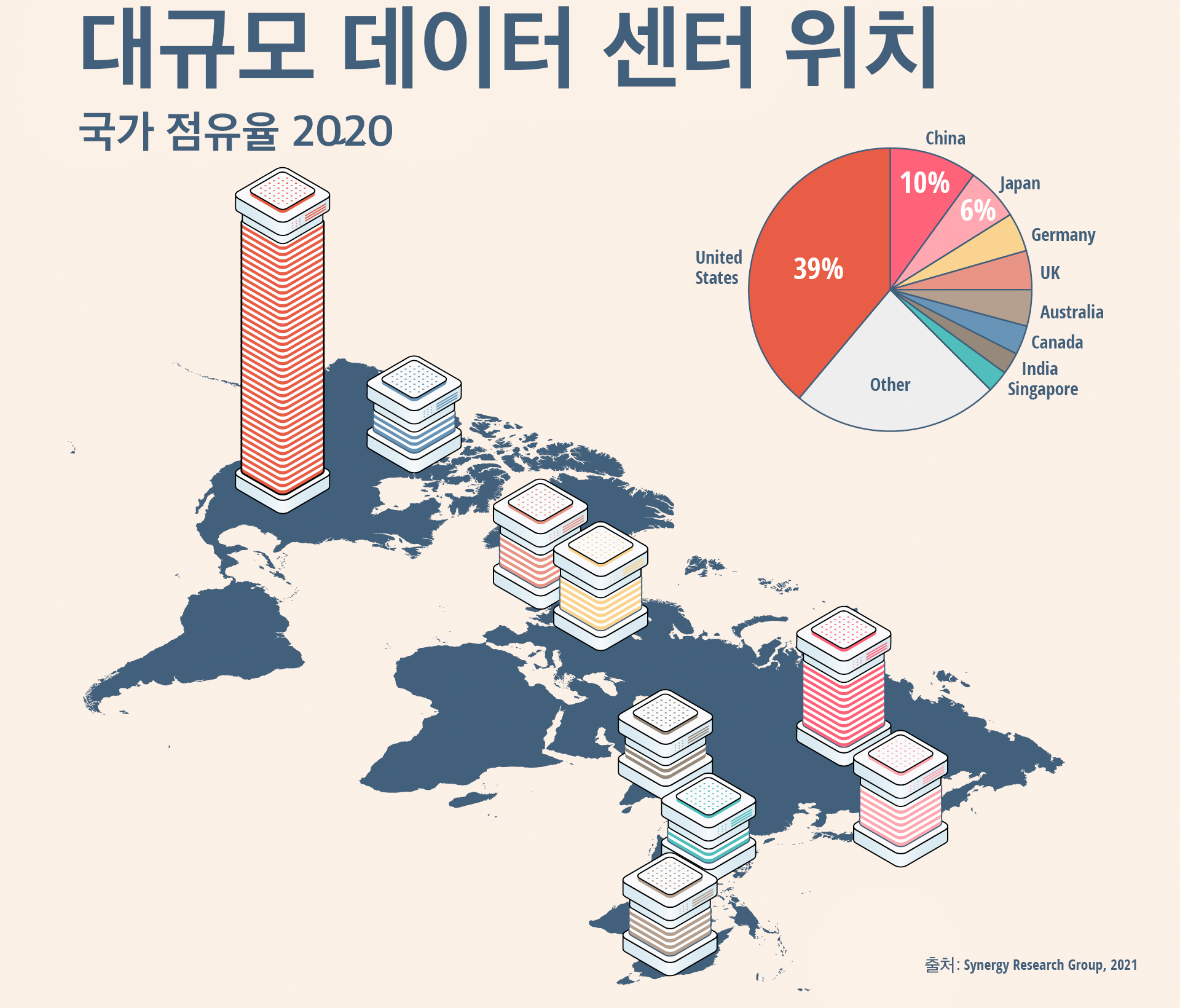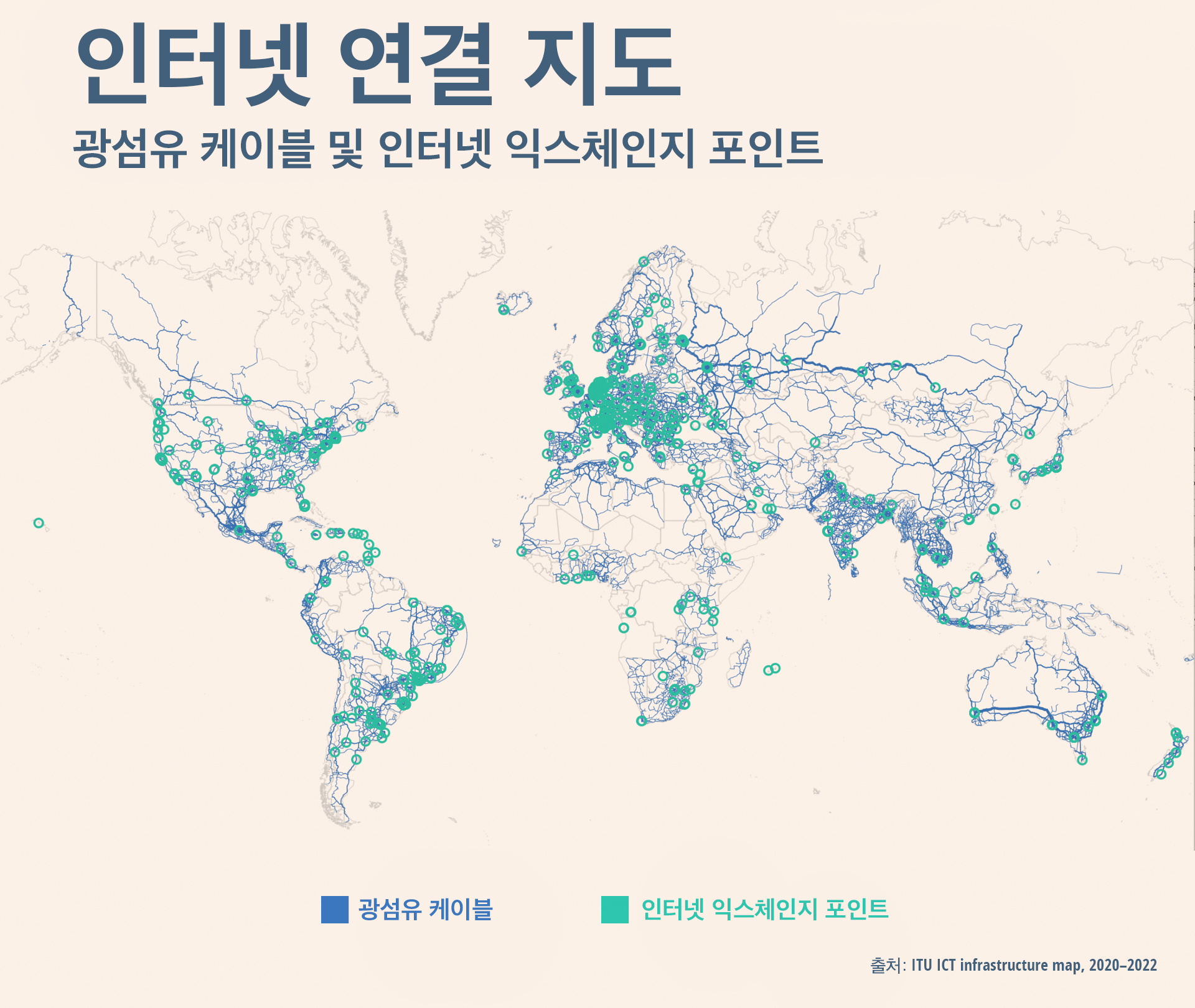 인터넷과 디지털은 국경을 모르지만 그 기반과 조직은 국경을 따라 구획되어 있으며, 기존의 국가 간 격차 혹은 열강과 약소국의 지도를 그대로 반영한다. 특히 현재 세계 경제를 좌우하는 거대 기술 기업 혹은 구글 (알파벳), 아마존, 페이스북, 애플, 마이크로소프트의 약칭인 GAFAM으로 불리는 소위 빅테크(Big Tech)가 북미와 유럽의 북반구에 기반을 두고 있는 현 상황은 남반구를 착취해 자신들의 부를 증식했던 제국주의 시대의 북반구를 그대로 연상시킨다. 이 글은 Transnational Institute의 2023년 1월 기사 Geopolitics of digital power의 번역으로 세계 디지털 권력을 결정하는 인프라로서 케이블, 위성, 데이터 센터, 컴퓨터, 반도체를 장악하고 있는 주요 국가들을 인포그래픽을 통해 소개하고 있다.