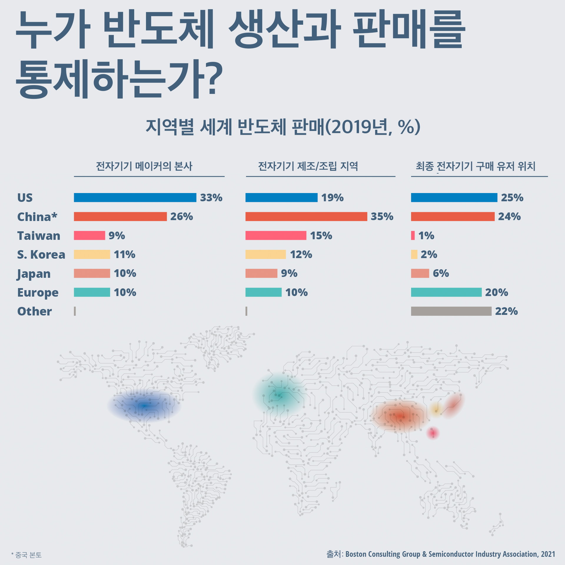 우리의 모든 디지털 기기에서 발견되는 반도체나 칩이 없다면 디지털 파워는 존재하지 않을 것이다. 미국이 반도체 연구개발(R&D)을 주도하는 반면 중국, 대만, 한국이 생산을 주도하고 있다. 미국의 중국에 대한 적대감 증가는 부분적으로 미래에 디지털 인프라를 누가 통제할 것인지에 대한 경쟁에 의해 촉발되었다.