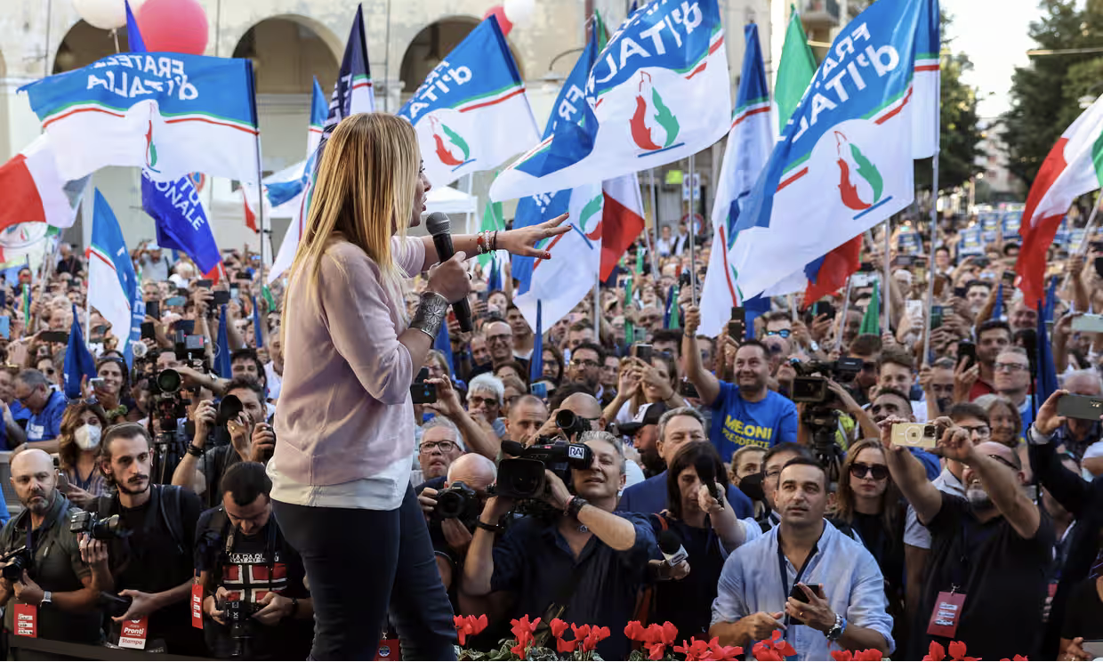 EU와의 협력과 국가 경제 정책에 대한 상대적 온건함에도 불구하고, 조르지아 멜로니(Giorgia Meloni)의 이탈리아 형제들(Brothers of Italy)은 그 뿌리가 네오파시스트라고 널리 알려져 있지만 극우, 포퓰리즘, 사회적으로 보수적이다.